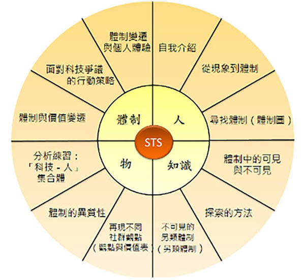 科學與技術對人類的生活有深遠影響,尤其在數位運算、網際網路、基因、奈米等科技高度發展與影響下,今日社會生活的變動更是劇烈。藉由既有科技與社會研究(science, technology and society studies, 簡稱STS)的研究取徑與案例,本課程探討科技的研發、推廣、使用,與社會影響層面,以及其中牽扯的科學家、工程師、廠商、政府、民眾等各種團體的關連。這種思考下,課程一開始由工程師與科學家的活動所建構出的科技世界與視界出發,探討發明、創新活動背後的複雜歷程,再由科學知識與技術物中介隱含的政治與權力關係,思考使用者、公眾、產業、專業的脈絡特質,以及科技爭議辯論,希望提供更為開放思考科技、社會與個人生涯之政治性與可能性。
