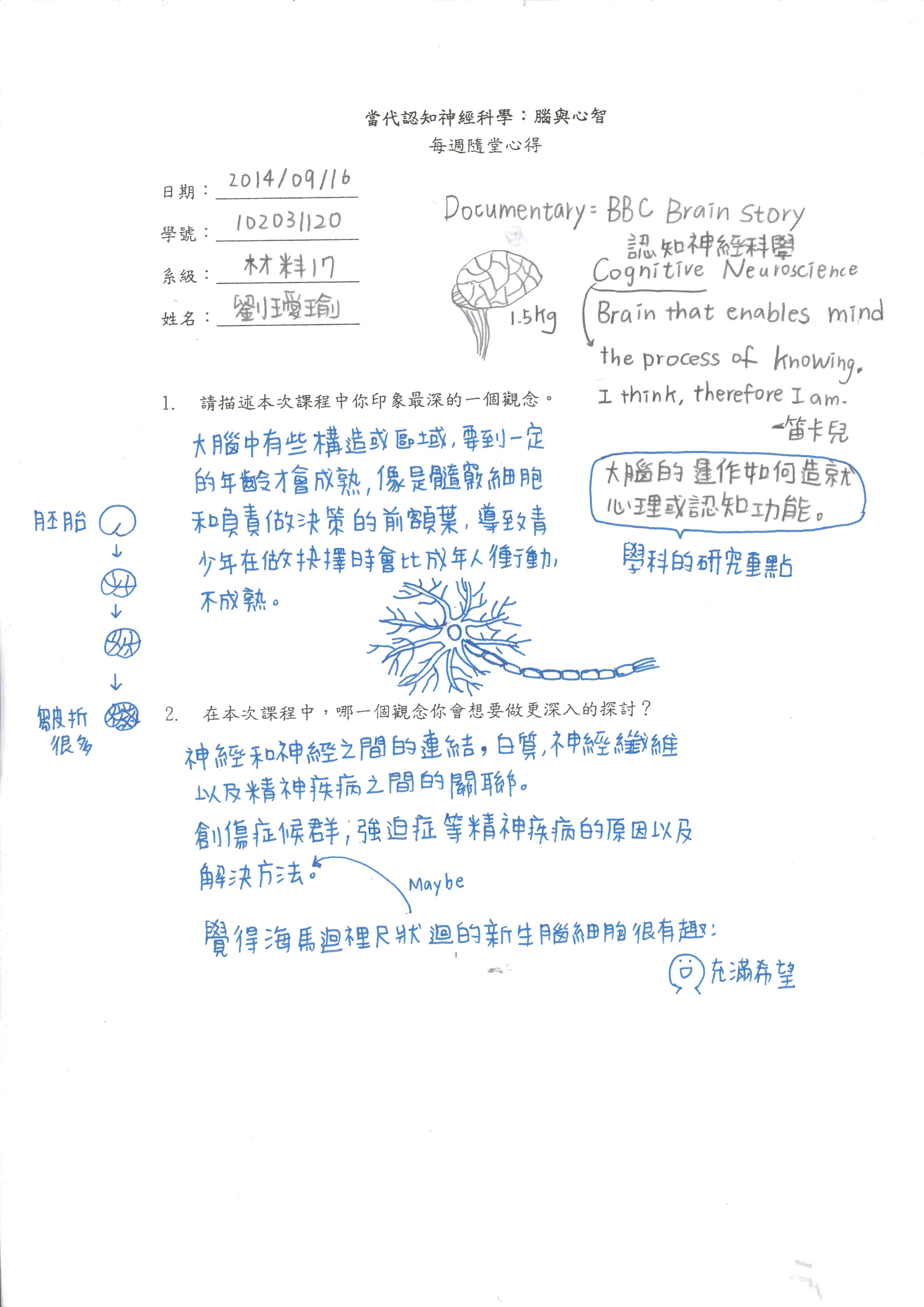 劉璦瑜2014腦與心智隨堂心得Weeks1.jpg |
