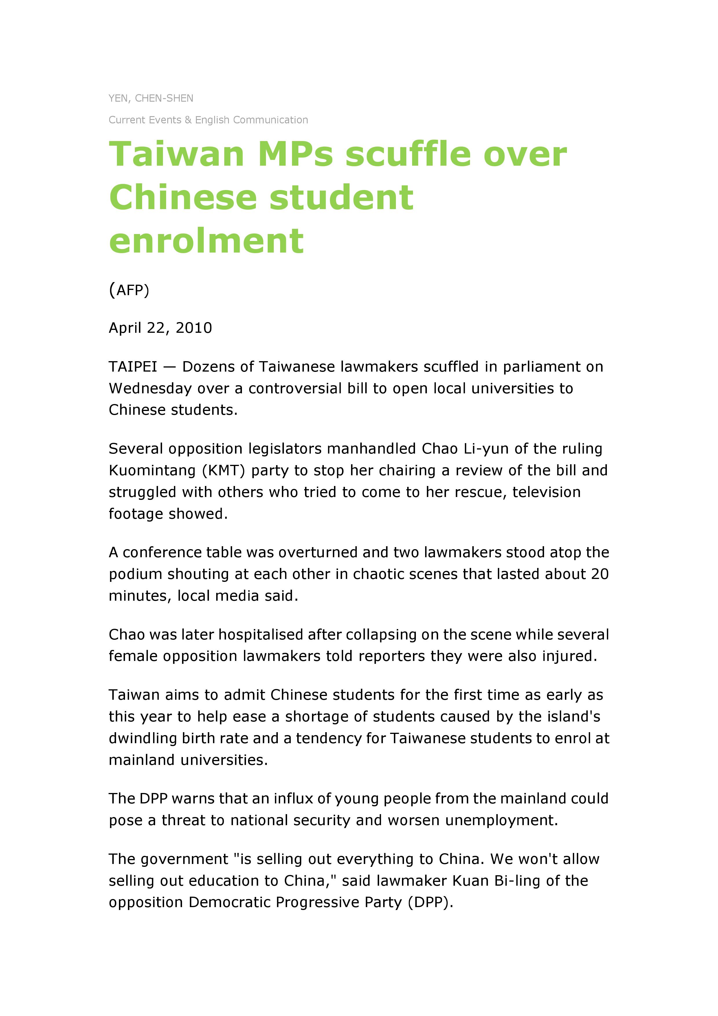 L11_Taiwan_MPs_scuffle_over_Chinese_student_enrolment_AFP