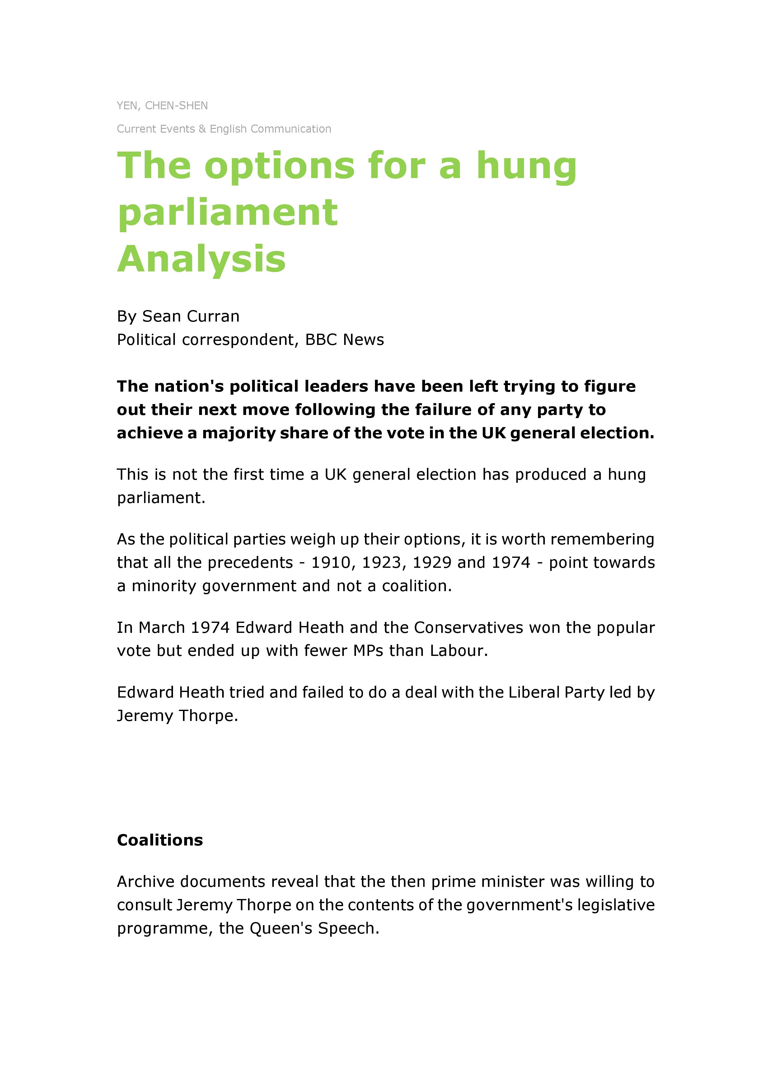 第12R講 The options for a hung parliament