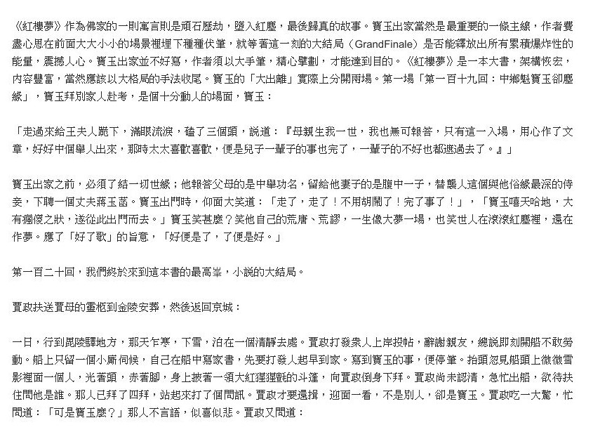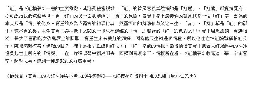 第1講 白先勇〡《紅樓夢》後四十回的悲劇力量 - 寶玉出家與黛玉之死